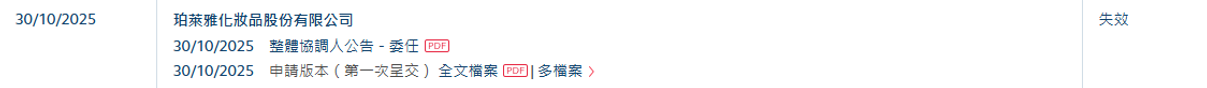 智通财经APP得悉,珀莱雅化妆品股份有限公司(简称:珀莱雅)(603605.SH)于2025年10月30日所递送的港股招股书满6个月,于2026年4月30日失效,递表时中金公司、瑞银集团为其联席保荐人。